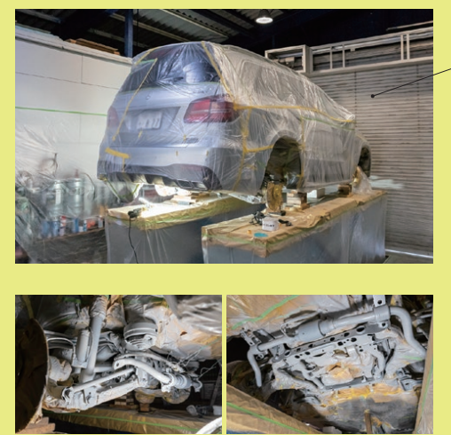 10年間、野外駐車場で眠り続けたそのボディは、 サビに覆われ、エアサスは抜け落ち、地面に沈み込むような姿に。