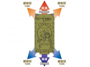 「メカニカルステアリングシステム」のモデル名は、その制御差動式操向装置のメカニズムを再現していることを表現している。RCタンクとして珍しいホイール・トリガータイプの送信機も自動車感覚での操作性を体感するための仕様。