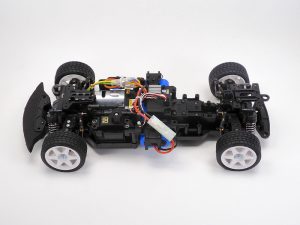 このBT-01シャーシはファイナルギアやステアリングリンケージなどシャーシを構成するパーツを入れ替えることで組立時に前輪駆動だけでなく、後輪駆動を選ぶことができるのが特徴。それにより同じ出力のモーターやバッテリーながら駆動方式による操作性の違いを体感できるのだ。例えばFR(フロントモーター/後輪駆動)ならトヨタ・スープラの操作感を味わうことも。