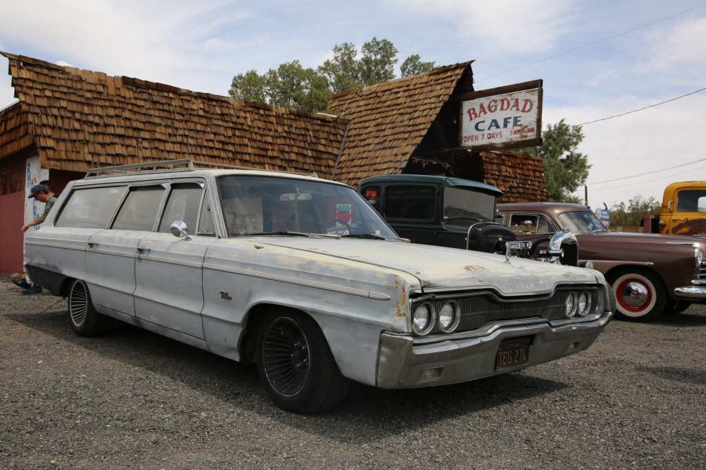 今回のロードトリップでは、ルート66ツアーズ&イベントのオーナーで近隣にお住まいの、カーラ・クラウスさんのアテンドで、映画に登場したトラックドライバーやブーメランを投げた青年(当時)がスペシャルゲストとして登場! さらにカフェに似合う往年のアメリカ車を招集して我々を次のスポットである「THE BARN」まで乗せてくれるというサプライズを用意してくれた。ルート66の一部をクラシックカーに乗って走る! 取材チームにとっては一生の思い出に残る経験となったのだ!