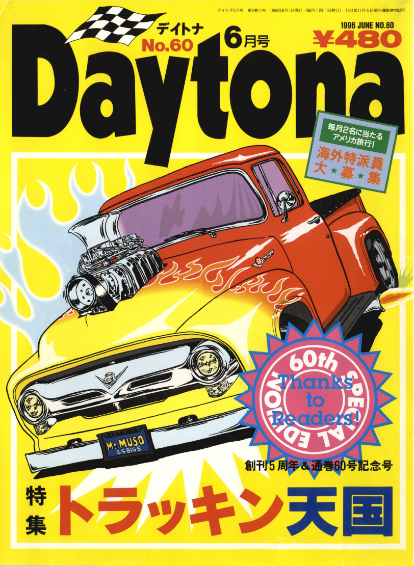 SPECiAL EDiTiON! Thanks to Readers! 炎をまとい、ブロワーを突き出したカスタムトラックが目印! 創刊5周年と通巻60号を記念するこの号は、デイトナの「熱い魂」が凝縮された永久保存版です!Library公開!