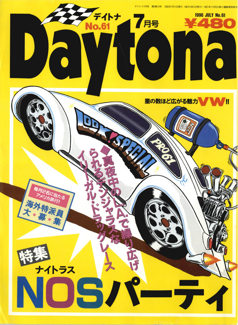 『Daytona No.61号巨大なターボとニトロを積んだカスタムVWが爆走! この号は、スピード、パワー、そして熱狂のドラッグレースに焦点を当てた、アドレナリン全開のサマー・エディションです!Library公開!