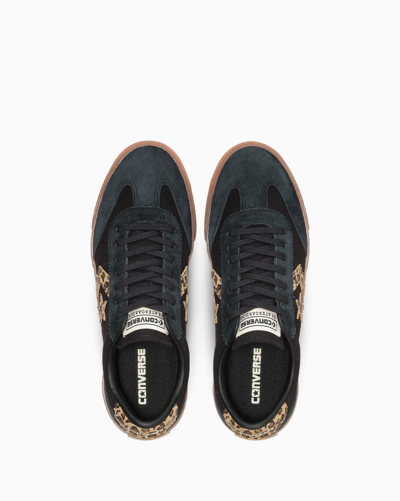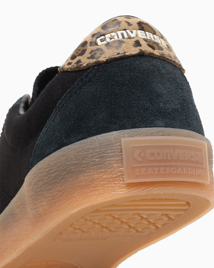 パッと見はタフなブラックスエードとキャンバスのコンビネーションだが、外腰のC&S(シェブロン&スター)ロゴとバックチップに、ワイルドな「レパード柄」を落とし込んでいるのが最大の特徴だ。 ガレージでの作業着や、いつものラギッドなデニムスタイルの足元に合わせるだけで、一気にストリート感が加速する。付属のホワイトのスペアシューレースに付け替えて、少しクリーンな表情を楽しむのもアリだ。スケシューとしての高い機能性はそのままに、スタイリングの主役を張れるパンチの効いた一足となっている。